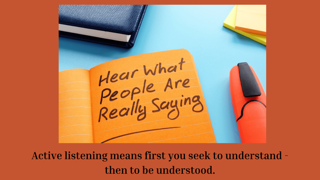 - Attunement – This is the next level. When you are attuned to the other person, you see things from their point of view. It leans on your Social and Emotional abilities. You can sense their pain, frustration, and whatever emotions are at the root of what they are saying. Lembi says it’s akin to how musicians tune into each other to “synchronize rhythms and harmonize pitch.” It also allows you to be aware of the speaker’s nonverbal messages.